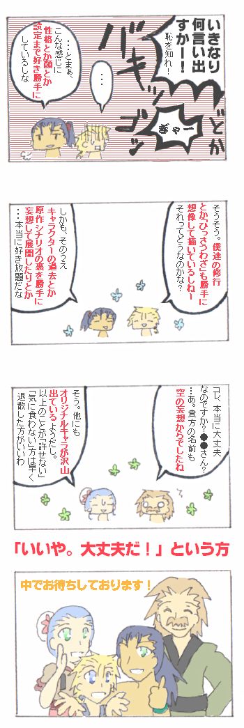 これを守れない方、もしくは荒らし行為目的の方は退室して頂きますようお願いします